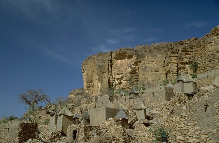 Dogon-Dorf zu Füßen der Falaise de Bandiagara